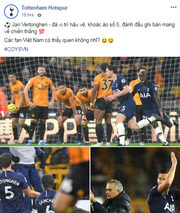 Trong men say chiến thắng, trang Fanpage chính thức của đội bóng thành London đã có những ví von về người hùng Vertonghen với cầu thủ Đoàn Văn Hậu của U22 Việt Nam. “Jan Vertonghen – đá vị trí hậu vệ, khoác áo số 5, đánh đầu ghi bàn mang về chiến thắng. Các fan Việt Nam có thấy quen không nhỉ?”
