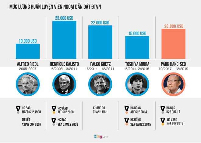 So sánh mức lương của các HLV ngoại dẫn dắt đội tuyển Việt Nam