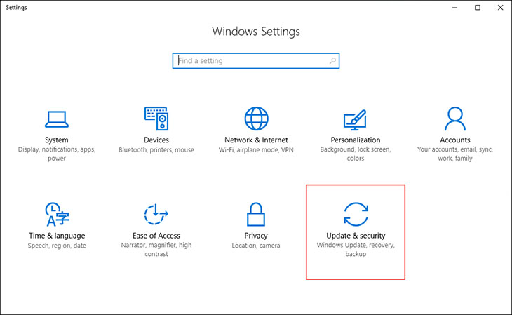 Bước 1: Bấm tổ hợp phím Windows + I để mở Settings > Chọn vào Update & Privacy.