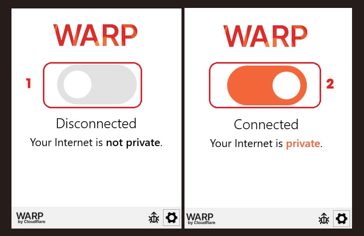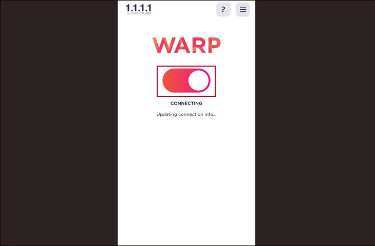 Bước 4: Để có thể truy cập vào Internet nhanh hơn, bạn chỉ cần gạt công tắt bật WARP lên là được. Biểu tượng ứng dụng WARP sẽ được thu nhỏ trên thanh công cụ Taskbar để bạn có thể truy cập bất cứ lúc nào.