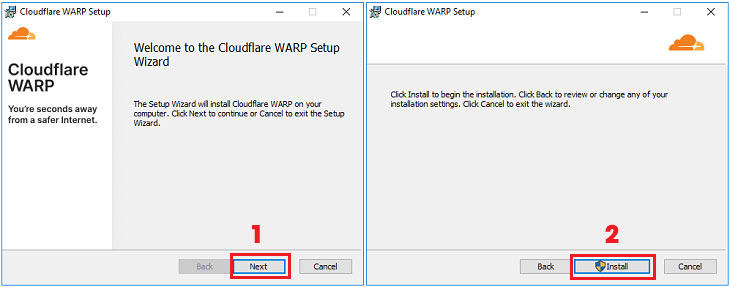 Bước 2: Sau khi quá trình tải hoàn tất, khởi chạy tập tin Cloudflare WARP Setup > Nhấn Next > Nhấn tiếp Install để cài đặt.